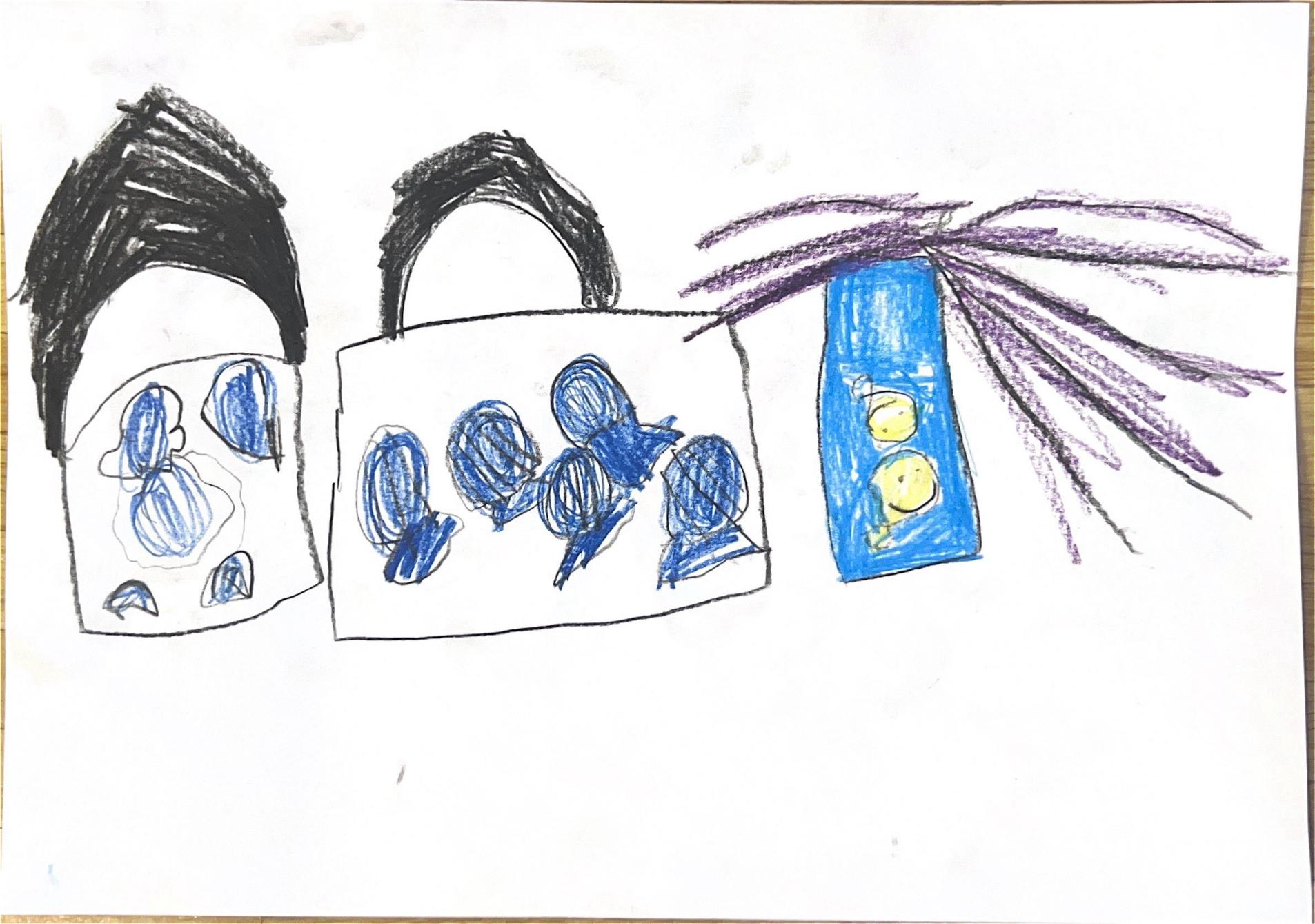 Rientrati dalla gita ai bambini è stato chiesto di disegnare l’esperienza appena vissuta. Di seguito i loro disegni.